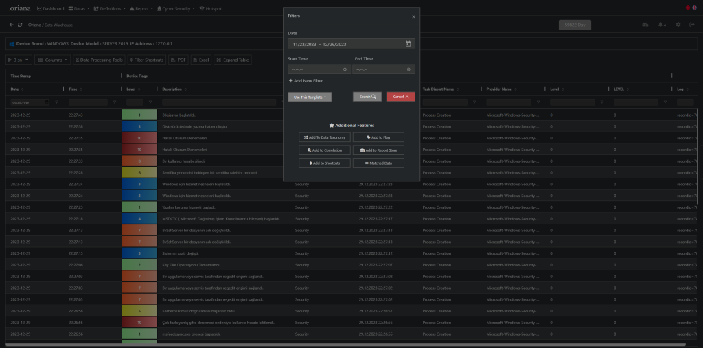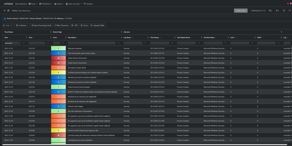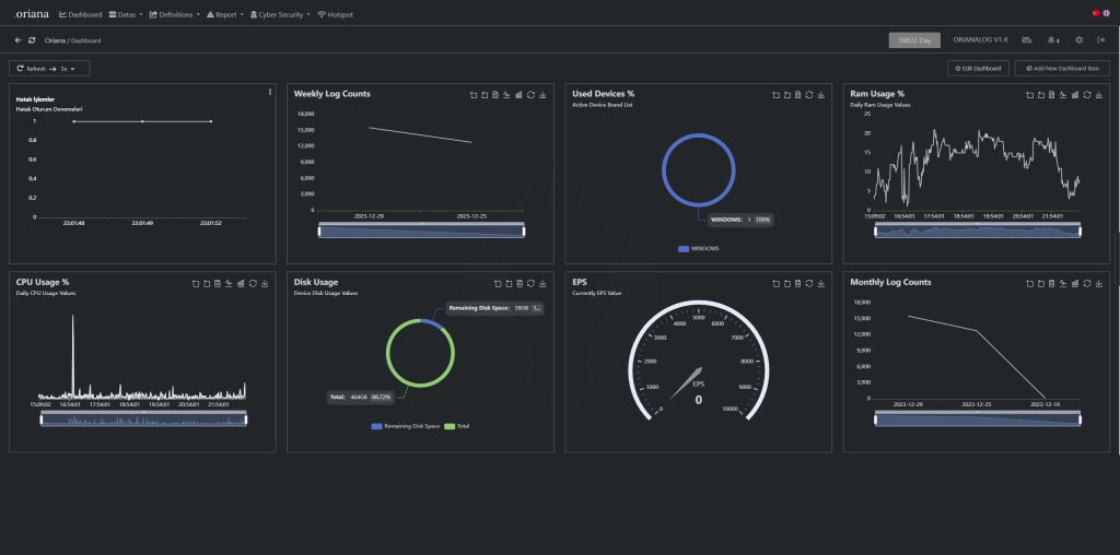 “OrianaLOG, yüksek performanslı log yönetimi ve analiz platformudur. Gelişmiş özellikleri ile veri güvenliğini en üst düzeye çıkarın.”